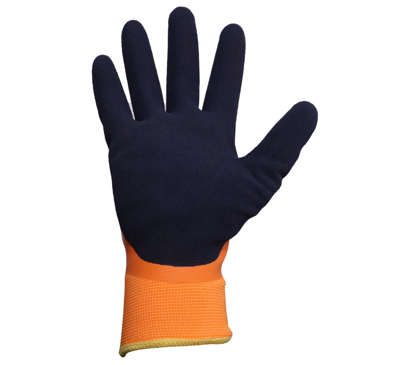 Γάντι από πολυεστέρα χωρίς ραφή με διπλή επίστρωση λάτεξ στην παλάμη και τον αντίχειρα και εσωτερική φόδρα.